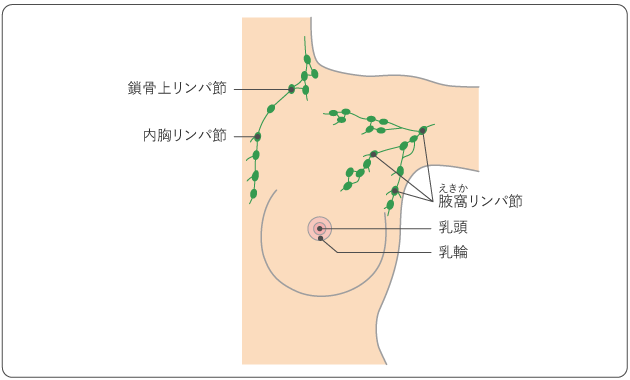 進行すると、がん細胞は周りの組織を壊しながら増殖し、血液やリンパ液の流れなどに乗って転移することもあります。転移しやすい場所は乳房の近くのリンパ節、骨、肝臓、肺、脳などです。