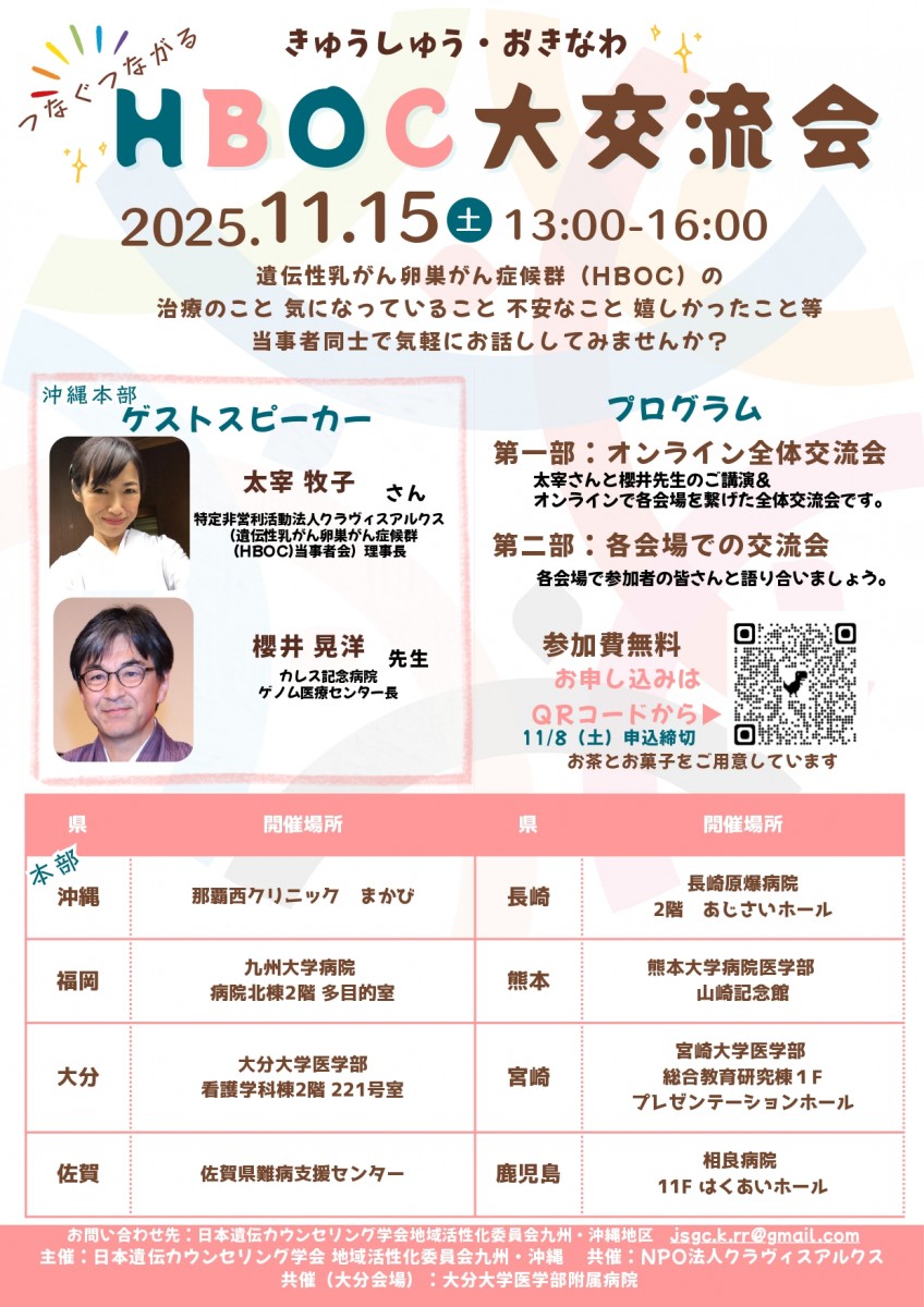 主催:日本遺伝カウンセリング学会 地域活性化委員会九州・沖縄(全国8つの会場で開催されます)