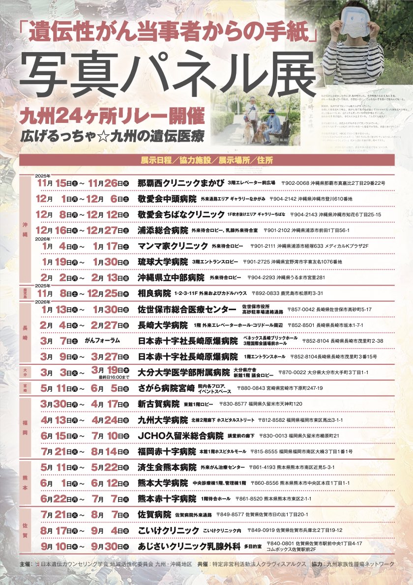 「遺伝性がん当事者からの手紙」写真パネル展のお知らせ