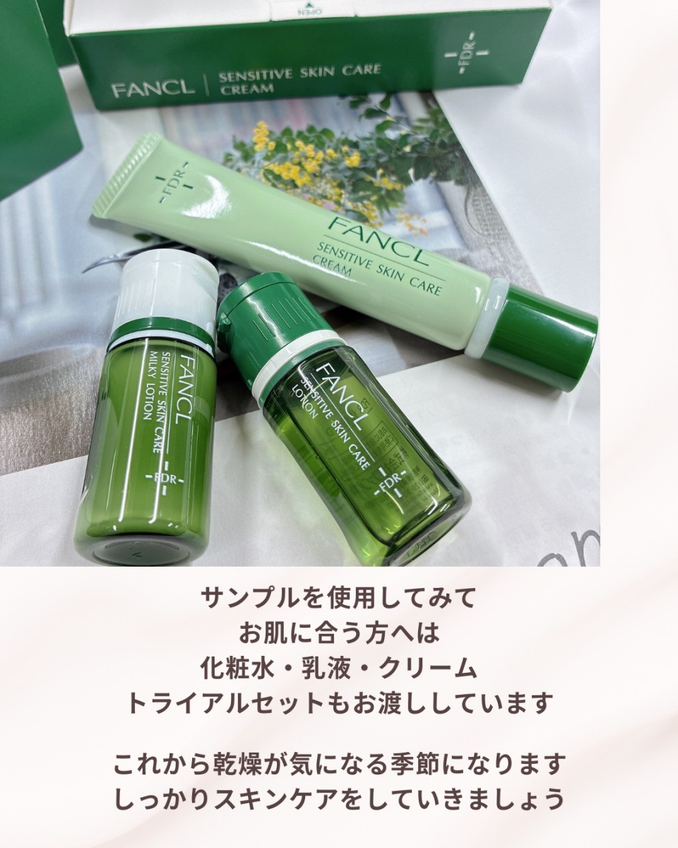 上記のサンプルとアピアランスケアに関するNagomi timeの冊子をお渡ししています。