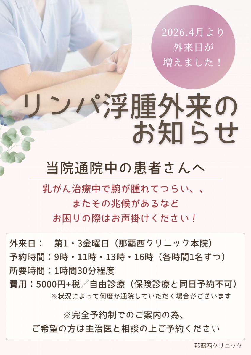 リンパ浮腫外来日が”第1・第3金曜日”に増えました!